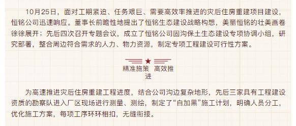 【用行動詮釋責任 以責任彰顯擔當】——恒銘金屬援建焦灣村災后住房重建暨固溝保土生態建設工程啟動