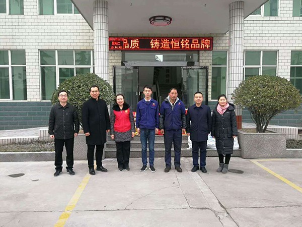 鞏義市總工會領導頂著寒風和鎮工會領導一起到我公司慰問企業貧困員工