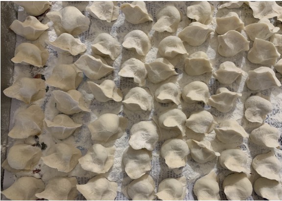 食堂備足了餃子面和美味的肉餡,大家自愿加入到包餃子的隊伍中,大家圍著桌子盤面、搟皮、包餃子,忙的不亦樂乎。